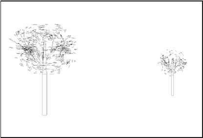 Ai tre indirizzi 30,40,50 corrispondono diversi valori assegnati alla variabile t che poi regola il Ciclo. A questo punto il gioco, sostanzialmente, è fatto e porta ad un ulteriore vantaggio implicito non irrilevante: far disegnare una chioma meno folta per gli alberi lontani non produce solo un disegno più appropriato ma anche un disegno più veloce! Nelle figure 1, 2 e 3 potete verificare il risultato sul "Viale" sugli "Alberi Vicini" e sugli "Alberi Lontani". Ora, quello che abbiamo visto è solo un esempio ma è molto utile per mostrare una logica di procedere nell'affrontare problemi analoghi anche con altri tipi di elementi.
