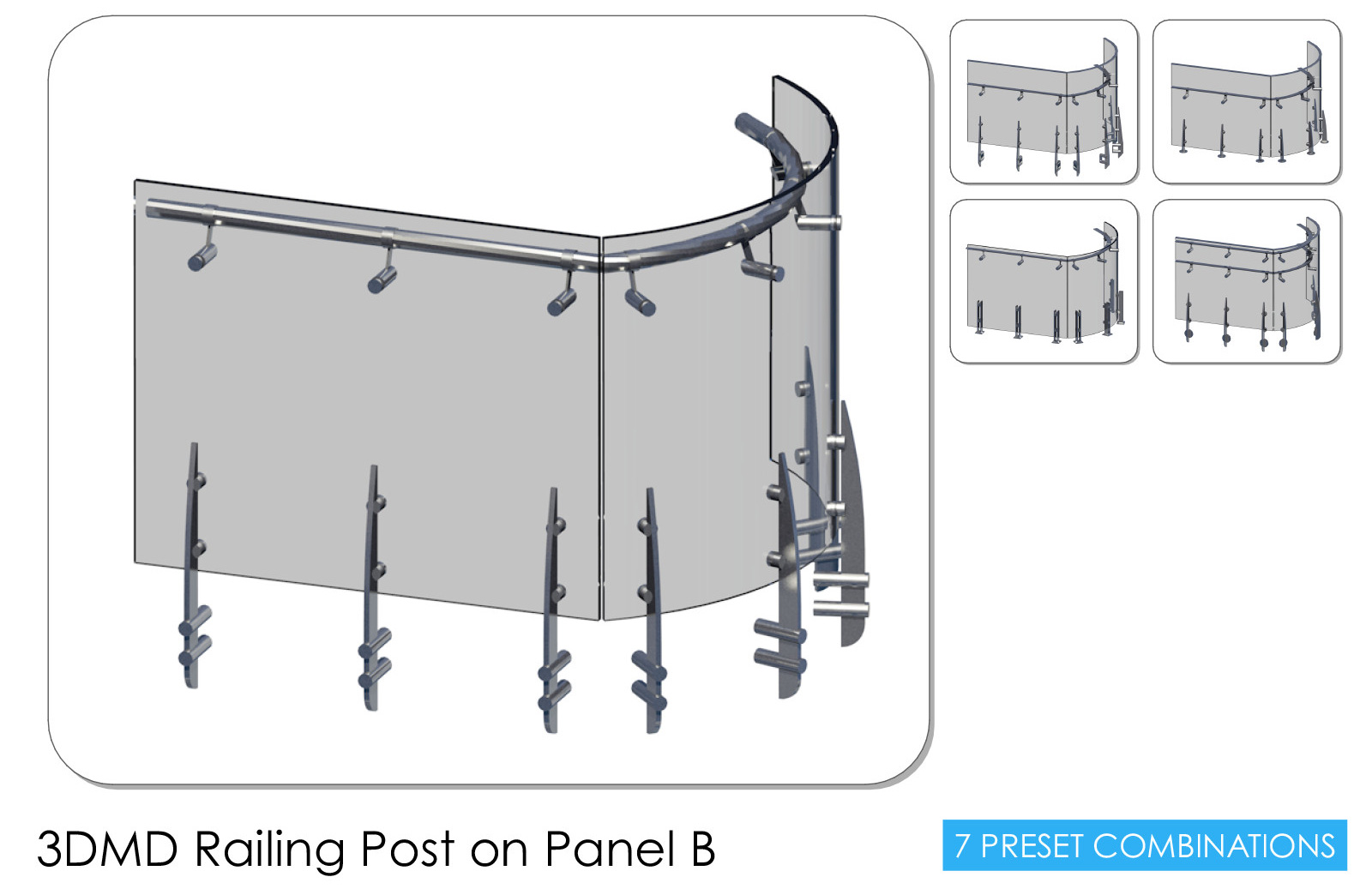 Le ringhiere 3DMD sono strumenti-oggetto per ArchiCAD.Con questi strumenti è facile disegnare una polilinea 3D, sia nella finestra 2D che in quella 3D. È possibile creare sia percorsi curvi che inclinati.Essi hanno molti parametri configurabili: posizionamento, tipo di pannelli, elementi tubolari, montanti, corrimani ecc. Una opzione permetterà di "stirare" a piacere la ringhiera e i pannelli o i montanti verranno posizionati e spartiti automaticamente.